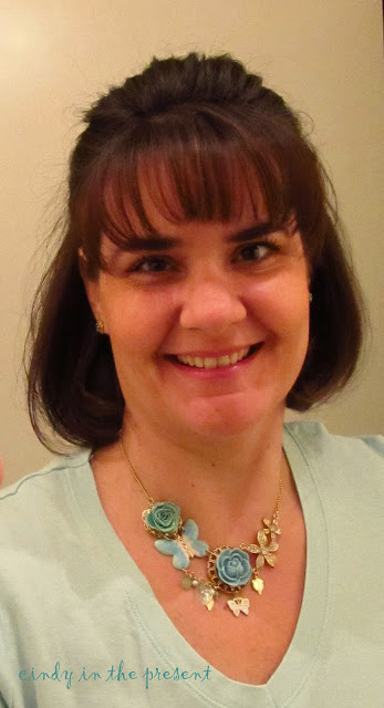 Cindy, I think your side-swept bangs look great! And I honestly think you look wonderful with the haircut you have now, but I totally understand being more comfortable with longer hair. Whenever I cut mine shorter than my shoulders, I always wish I hadn't. Ah well... but I did laugh out loud about your use of sunglasses as headband. That's pretty much my favorite way to wear my hair!